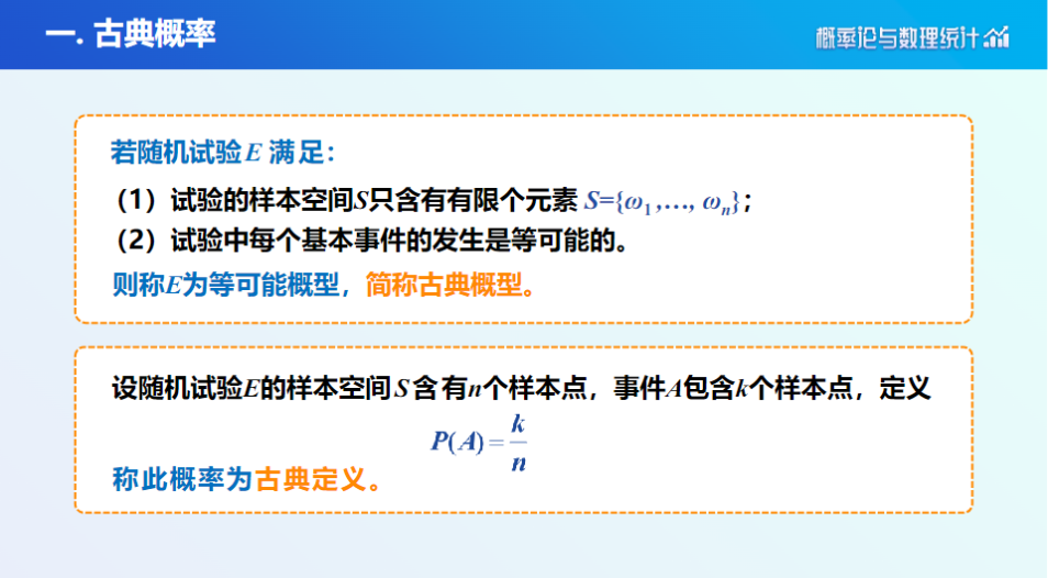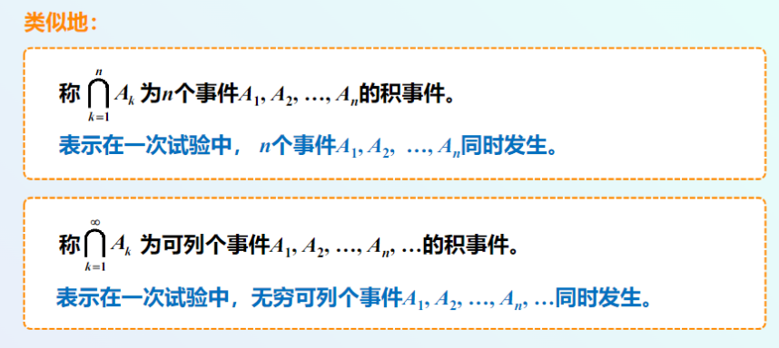 事件的发生:在一次试验中,事件A发生的含义是,当且仅当A中一个样本点 发生或出现。事件A发生也称为事件A出现