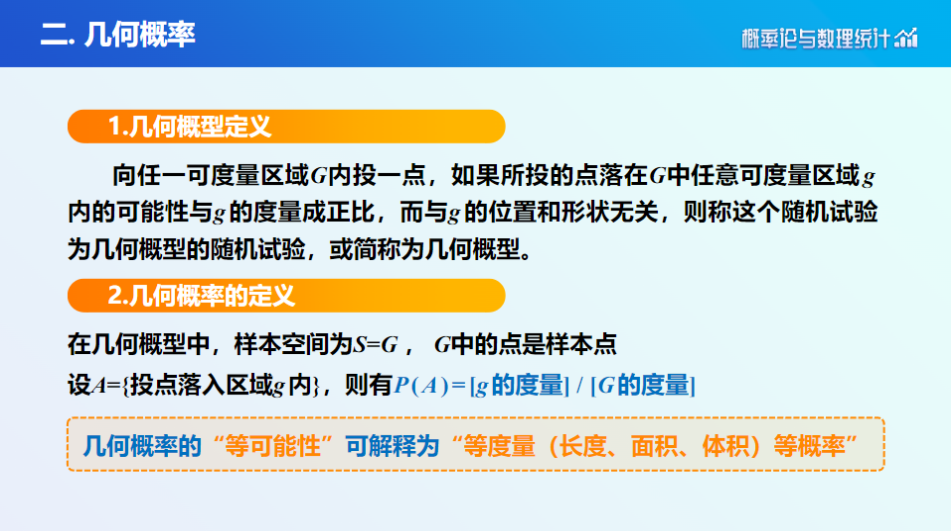 若$X$服从参数为$p$的几何分布,$n$, $m$为任意两 个正整数,则 $$P\left\lbrace X>n+m\ |\ X>n\right \rbrace =P\left\lbrace X>m\right \rbrace $$ 可以理解为:若已经进行了$n$次试验,事件$A$没有发生,则又进行$m$次试验$A$依然没有发生的概率与已知的信息(前$n$次试验$A$没有发生)无关 这就是说, 并不因为已经进行了$n$次试验$A$没有发生,而会使得在第$n+1,n+2,\dots,n+m$次试验中$A$首次发生的概率提高。