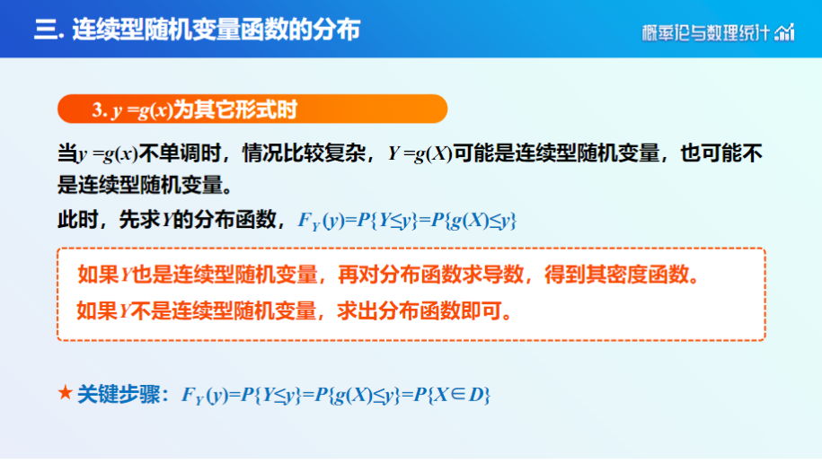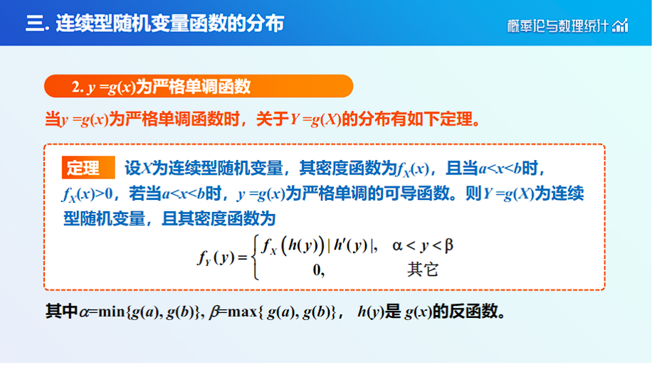 $$F_{Y}(y)=F_{X}(h(y))或1-F_{X}(h(y))$$