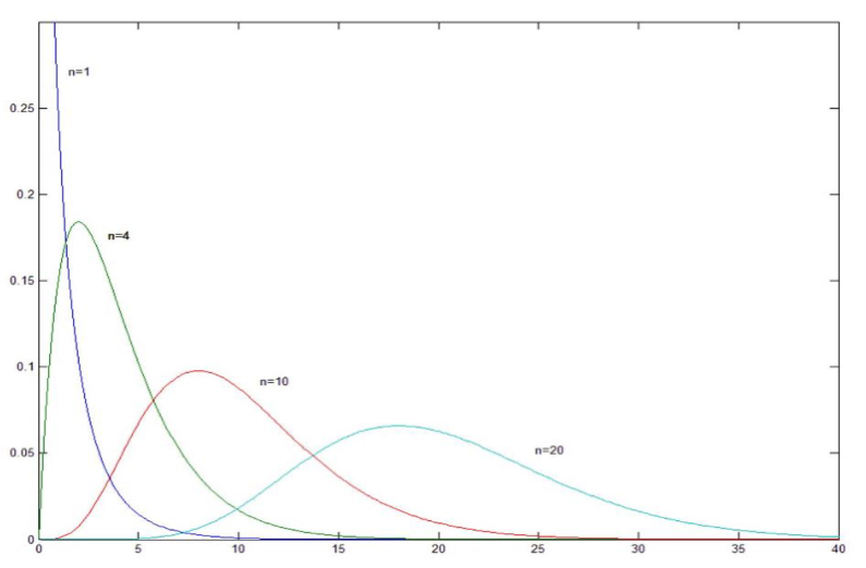 | $\sigma^2 \leq \sigma_0^2$ | $\sigma^2 > \sigma_0^2$ | $\dots$ | $\left\lbrace \frac{1}{\sigma_0^2} \sum_{i=1}^{n} (X_i - \mu)^2 > \chi^2_{\alpha}(n) \right \rbrace$ | $\chi^2_{\alpha}(n)$ |